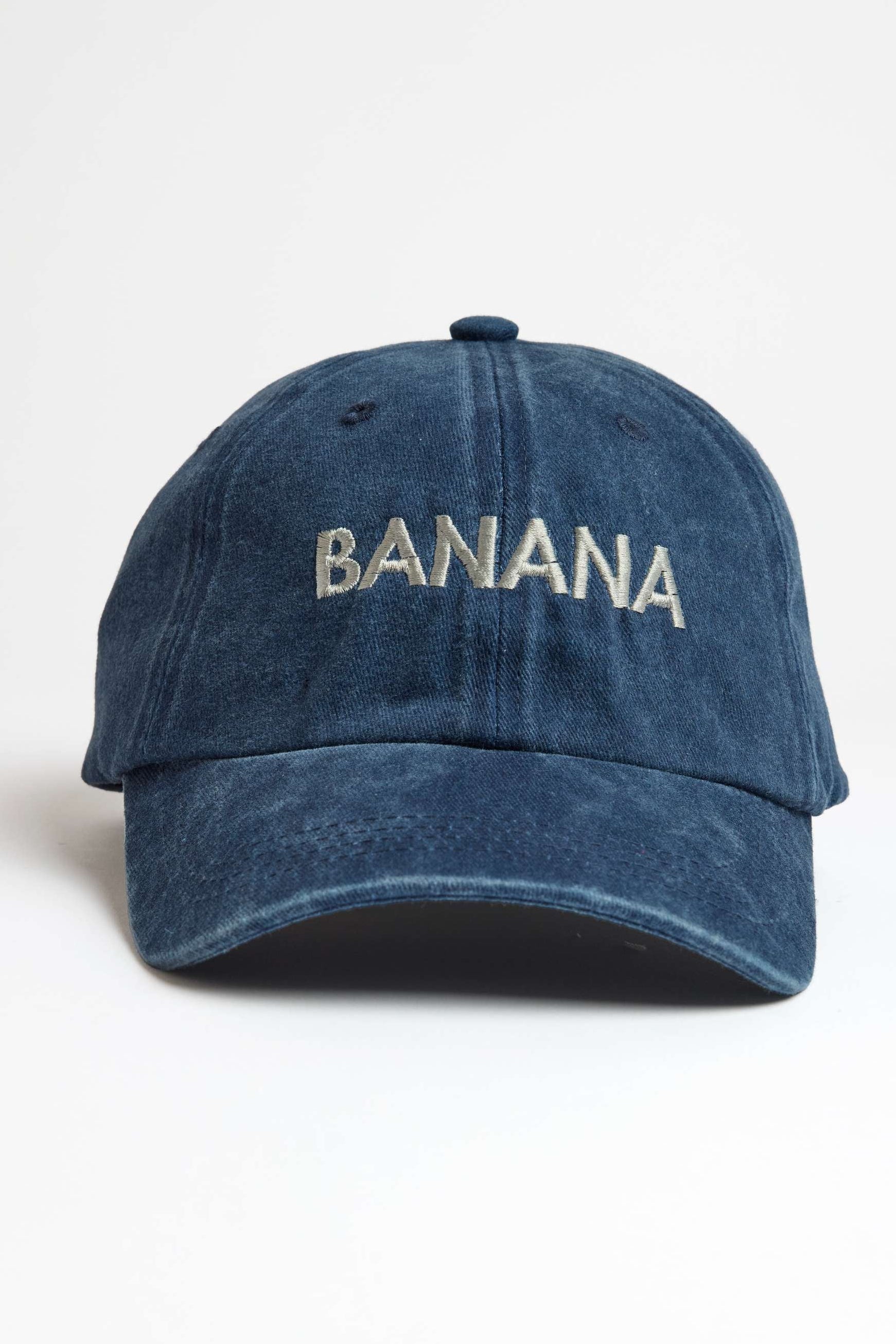 Our washed navy cap, gives a denim affect, featuring the signature BANANA logo. Easy to wear, easy to love.