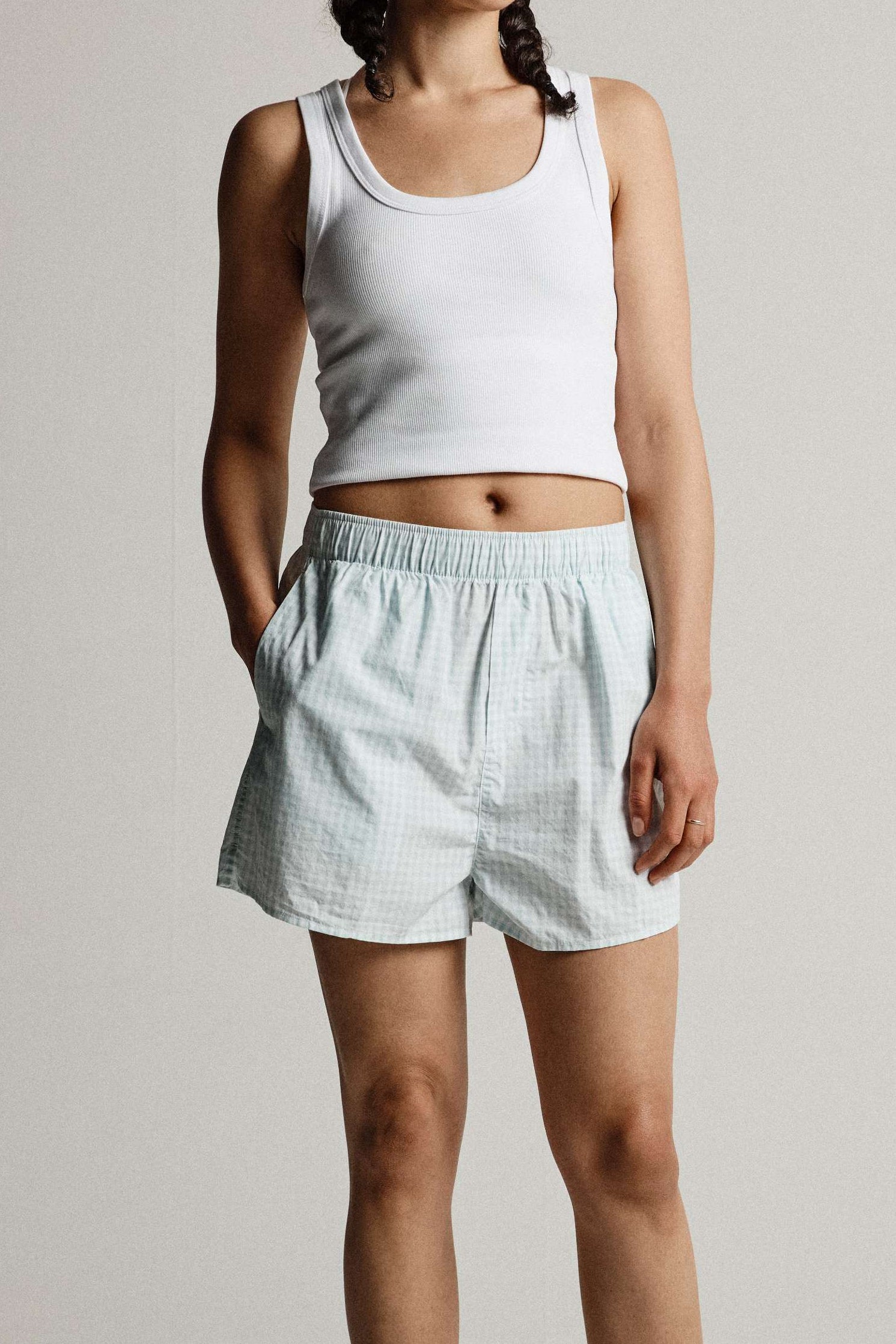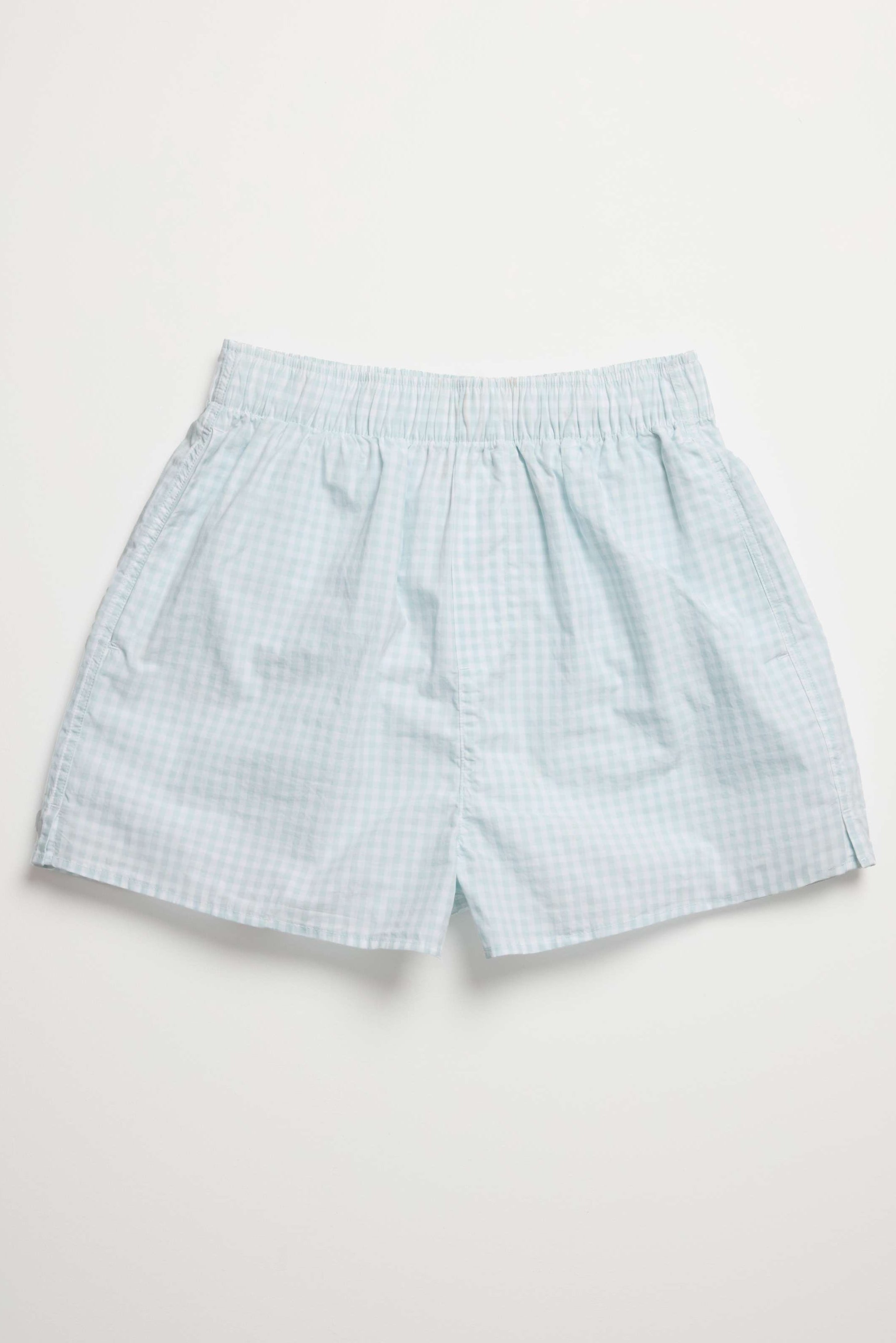 Soft pale blue gingham with a subtle, classic vibe. A timeless style that pairs perfectly with a tee or shirt for ultimate comfort.